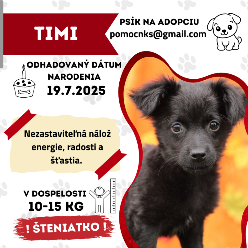 Timi má svojho krsného rodiča, ktorý príspevkom tak podporil vytvorenie bezpečného miesta pre štěniatka.