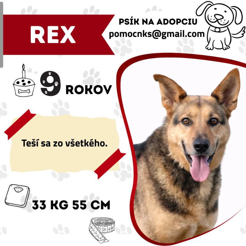 Rex je dobráčisko od kosti. Nikdy ho nikto nebil a nepoznal tvrdý život, na rozdiel od mnohých iných našich zachránených psíkov. Na Rexovi je to vidieť – život je pre neho jedna veľká zábava, a on sa každý deň len usmieva a teší sa zo všetkého. 🌈🎉 Nemáš čas na venčenie a necháš ho vyblázniť sa vo výbehu? Nevadí. Ponaháňa si chvost, prebehne sa okolo plota, vyskúša niekoľko atletických preskokov a obratov a je spokojný. Máš chuť na prechádzku ? Super, pridá sa k tebe. Prečmuchá všetko nové po ceste, prebehne seba aj teba, skamoši sa so každým, kto bude za? Prší a nechce sa ti nikam ? Tiež super! Zchmatne hračku z košíka, vylezie si k tebe na gauč a kým ty si budeš scrolovať tie nekonečné videá on si bude spokojne žužlať hračku.