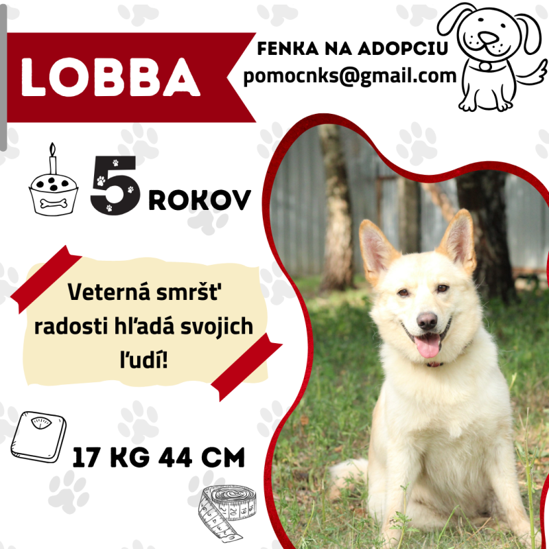 🐕🦺 Lobba si z minulosti nesie zranenie zadnej nohy, kvôli ktorému potrebuje citlivý prístup, najmä pri manipulácii a fixácii. Je to trošku svojhlavá dáma, ktorá rešpektuje jasné hranice, takže hľadá človeka, ktorý vie, čo chce, a dokáže jej to láskavo ukázať.