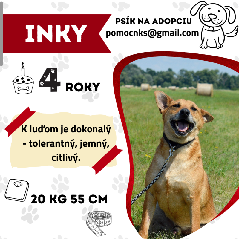 Inkyho sme prebrali z iného útulku. Malý nenápadný psík, nespravodlivo označený "mnohými" nálepkami. Stratený vo svete ľudí sa učí, ako to všetko vlastne funguje. Predpokladáme, že kvôli zlým skúsenostiam z minulosti útočil na psov hneď pri prvom kontakte. Stačilo však pár výcvikových prechádzok a už s nimi dokáže byť na prechádzka v pohode. A takto šikovný je vo všetkom, čo sa učí.