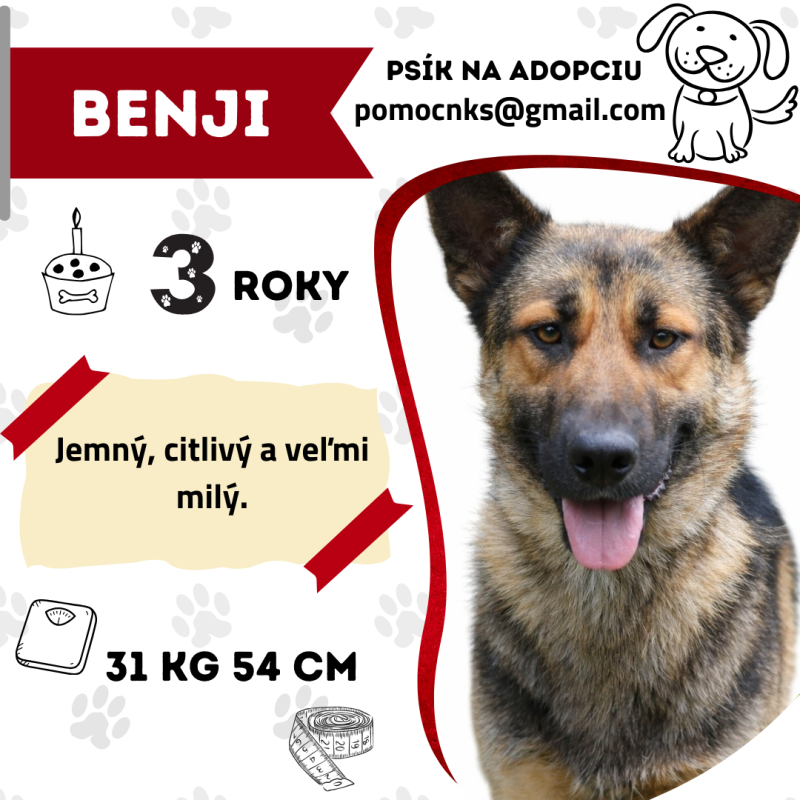 Benji má 3 roky a povahu, ktorú by sme najlepšie opísali jedným slovom: dobrák.