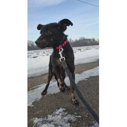 Mladučká fenka, ktorá k nám prišla v zúfalom stave: extrémne podvyživená, s pokročilým svrabom a vážnymi kožnými problémami. Momentálne prebieha stabilizácia a liečba. Má veľký strach z ľudí, keďže v minulosti nebola socializovaná. Pracujeme na odbúravaní strachu a budovaní dôvery.